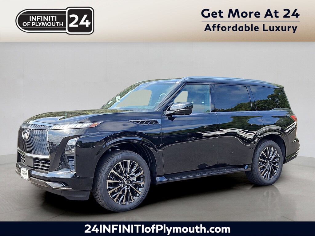 Experience luxury and power with this Black 2026 INFINITI QX80 AUTOGRAPH AWD, showing just 10 miles on the odometer. This top-tier SUV features a 3.5L Twin Turbo V6 delivering 450hp and 516 ft-lbs of torque, paired with a 9-speed shiftable automatic transmission and INFINITI All-Mode AWD for superior performance in all conditions. Enjoy premium amenities such as semi-aniline leather seats, heated and cooled first and second-row seating, massaging front seats, a 14.3-inch touchscreen with integrated Google navigation, and a Klipsch 24-speaker audio system. Safety is paramount with Predictive Forward Collision Warning, Blind Spot Intervention, Lane Departure Prevention, 3D Around View Monitor, and Rear Automatic Braking. Adaptive cruise control, head-up display, and wireless device charging add to the convenience. With advanced suspension, power folding third-row seats, and a panoramic sunroof, this QX80 AUTOGRAPH is the ultimate combination of comfort, capability, and technology. Ready for immediate delivery and backed by INFINITI's full factory warranty.Price includes: $2000 - INFINITI US MY26 QX80 Special APR Cash 25I2299GAG (Exp. 11/03/2025)
