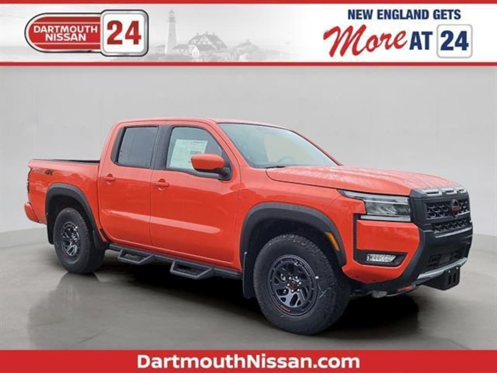 4WD. Orange 2025 Nissan Frontier PRO-4X 4WD 9-Speed Automatic with Overdrive 3.8L DI DOHC 24V V6When the time comes for you to start your car-buying experience, were here to help you make the right decision. Were happy to answer any questions, and provide fully transparent details and advice, so you can figure out which options are best for you. You can easily review our inventory to get an idea, as well as our research materials to get a better sense of your options. Well be here for you when youre ready to get started on your Nissan adventure. Dartmouth Nissan proudly serves drivers in New Bedford, Fall River, and West Port, as well as Dartmouth and South Dartmouth drivers. Get started by browsing our inventory to see which models pique your interests so you can plan your visit and get a closer look, as well as experience behind the wheel. We look forward to being your go-to local Nissan dealership in the area!Trust, Integrity, Peace of Mind and Excellent Customer Service is what we offer, whether it's Service or Sales you'll be pleased with the experience. Visit us today. Price includes: $3500 - Nissan Customer Cash