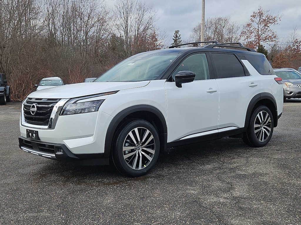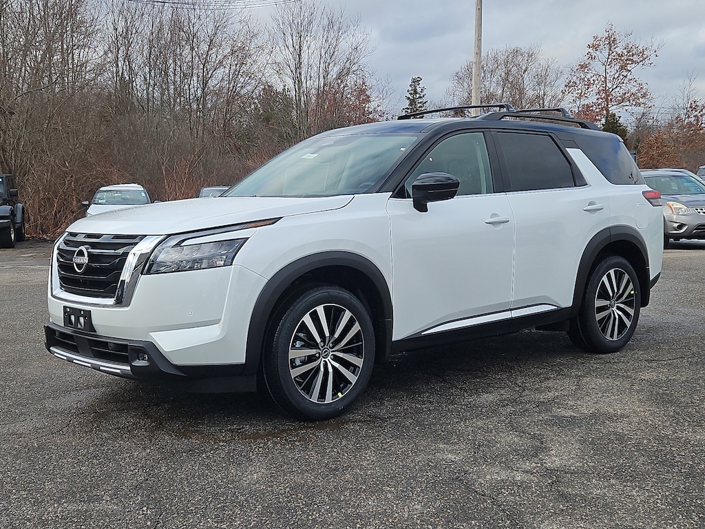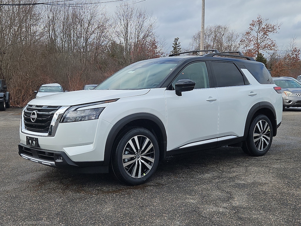 Experience the ultimate in family adventure with this stunning White 2025 Nissan Pathfinder Platinum 4WD, boasting only 10 miles on the odometer. This top-of-the-line SUV is powered by a robust 3.5L V6 engine paired with a 9-speed automatic transmission and advanced part/full-time 4WD for unbeatable performance in any condition. Enjoy luxurious Semi-Aniline leather seating for up to 8 passengers, heated and ventilated front seats, heated rear seats, and a panoramic sunroof. Stay safe and connected with Nissan's ProPILOT Assist, Intelligent Around View Monitor, Blind Spot Intervention, and a full suite of airbags. The Bose premium audio system, wireless Apple CarPlay/Android Auto, integrated navigation, and 9-inch touchscreen keep everyone entertained and on track. Flexible cargo space, power liftgate, roof rails with cross bars, and a Class III tow hitch mean you're ready for any journey. With LED headlights, rain-sensing wipers, and advanced safety systems, this Pathfinder Platinum is ready for your next adventure.
