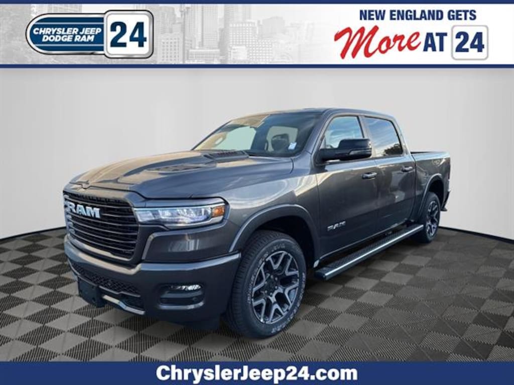 Experience the future of trucks with this stunning Gray 2026 Ram 1500 Laramie 4x4 Crew Cab, featuring only 10 miles on the odometer. Powered by the innovative Hurricane 3.0L Twin Turbo I6 engine delivering 420hp and paired with an 8-speed automatic transmission, this truck is built for both power and efficiency. Enjoy premium comfort with leather-trimmed bucket seats, heated and ventilated front seats, a heated steering wheel, and dual-zone automatic climate control. The advanced safety suite includes Blind Spot Detection, Forward Collision Warning-Plus, Adaptive Cruise Control with Stop & Go, and ParkSense front/rear parking sensors. Stay connected with Uconnect 5 Navigation on a massive 12" touchscreen, Apple CarPlay, Android Auto, wireless charging, and a 4G LTE Wi-Fi hotspot. The Dual-Pane Panoramic Sunroof floods the cabin with natural light, while the Bed Utility Group with spray-in bedliner, deployable bed step, and adjustable tie-down hooks make hauling easy. With a Class IV tow package, power tailgate, and 20" premium wheels, this Laramie blends luxury, technology, and rugged capability. Don't miss your chance to own the ultimate full-size truck-schedule your test drive today! Chrysler Jeep Dodge Ram 24 is your one-stop-shop for all your automotive needs so don't hesitate; Call us now and ask to speak with one of our fully certified and customer-friendly Sales or Service Consultants. From there, you will be able to schedule a test drive, Brake job or Oil Change of any of our 11 locations. We have New and Pre-Owned vehicles on the lot! Customer First Award for Excellence CJDR 24 is committed to offering our Brockton customers with the highest level of customer service, which is why we are thrilled to be a honored recipient of the FCA Customer First Award for Excellence. This prestigious award is designated for only those dealerships exemplifying extraordinary care and dedication to their customers, in five key areas of performance: Give us the opportunity to show you. Call or visit us today.