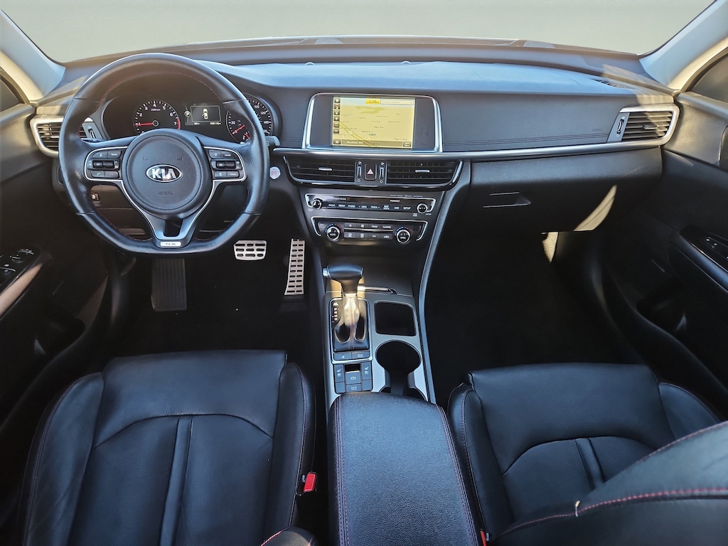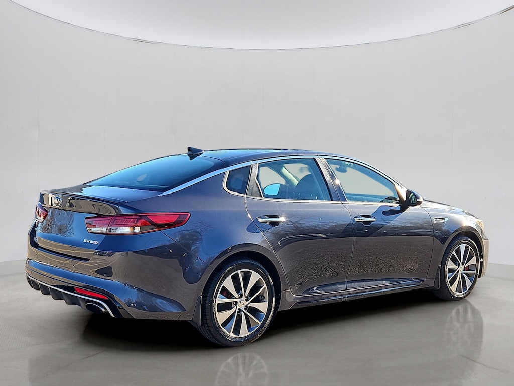 CARFAX One-Owner Experience sporty luxury and turbocharged performance with this 2016 Kia Optima SX Turbo! Finished in a sleek gray, this 4-door sedan features a powerful 2.0L Turbo I4 engine paired with a 6-speed shiftable automatic transmission and sport-tuned suspension for an engaging drive. Step inside to find premium leather upholstery, a heated steering wheel, and dual-zone automatic climate control for year-round comfort. Enjoy advanced technology with an 8-inch UVO infotainment touchscreen, navigation, Bluetooth, HD Radio, SiriusXM, voice controls, and rearview camera. The Optima also offers aluminum alloy wheels, LED headlights and taillights, paddle shifters, power-folding heated mirrors, push-button start, and a proximity entry system. Safety is top-notch with front/rear crumple zones, front/rear side curtain airbags, electronic stability control, and a tire pressure monitoring system. Don't miss your chance to own a well-equipped sedan that blends comfort, style, and performance.